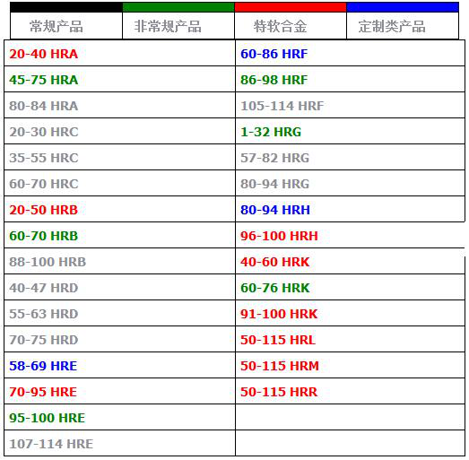 常用標尺是HRC、HRBHRF,其中HRC標尺用于測試淬火鋼、回火鋼、調質鋼和部分不銹鋼。這是金屬加工行業應用多的硬度試驗方法。HRB標尺用于測試各種退火鋼、正火鋼、軟鋼、部分不銹鋼及較硬的銅合金。HRF標尺用于測試純銅、較軟的銅合金和硬鋁合金。HRA標尺盡管也可用于大多數黑色金屬,但是實際應用上一般只限于測試硬質合金和薄硬鋼帶材料 。