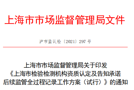 5月24日,上海市市場監管局發布《上海市檢驗檢測機構資質認定及告知承諾后續監管全過程記錄工作方案(試行)》?!豆ぷ鞣桨福ㄔ囆校诽岢?,上海市檢驗檢測機構資質認定所有審批事項(包括首次、復查、擴項、變更)及告知承諾后續監管實施全過程記錄。其中,對上海市檢驗檢測機構資質認定現場評審及告知承諾后續監管現場檢查實施全程音像記錄。