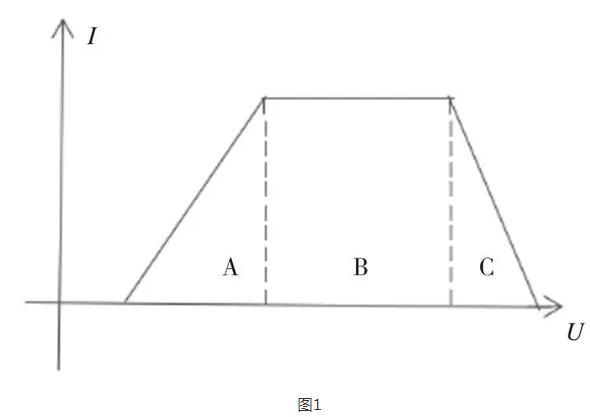 從大方向來(lái)考慮,交流充電樁與直流充電機(jī)的檢定有諸多相通之處,但充電樁在檢定和使用中都要注意恒功率區(qū)域問題。如圖1所示,A、C區(qū)域?yàn)榈碗娏髑闆r,充電效率低,容易炸機(jī);B區(qū)域?yàn)楹愎β蕝^(qū)域,適合檢定。